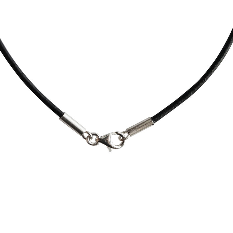 Zwarte 1mm leren ketting met zilveren sluiting.
